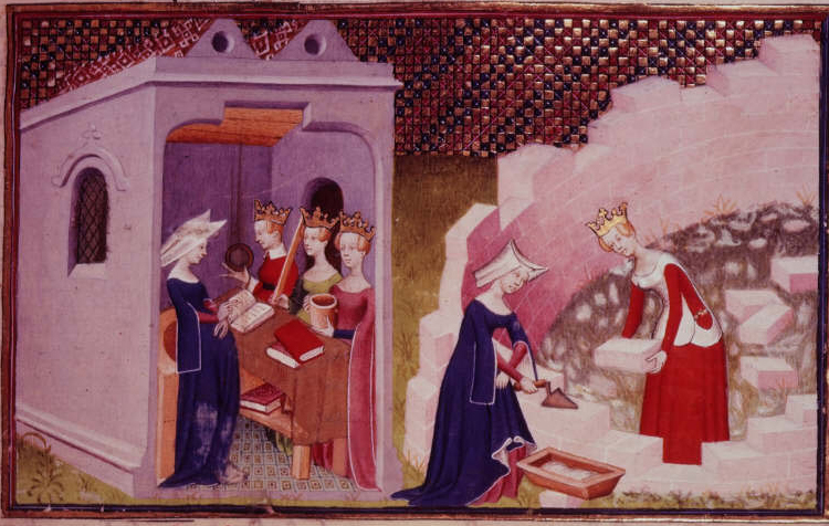 from Christine de Pisan, Building the City of Ladies, image used in multi-media performance, The City of Ladies, Medieval Women's Choir, 2004, Seattle