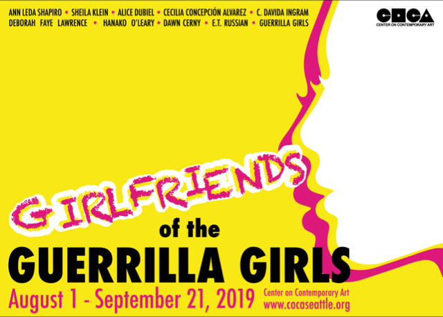 Update: So Girlfriends of the Guerrilla Girls is up through September 21, 2019. I plan to be at the gallery this Thursday 8.22, and a group of the exhibiting artists will be there 8.31 for informal presentations about some of the artwork. Several of us will be there on First Thursday, 9.5 until 9pm. Also important is the news that CoCA is a 2019 recipient of the Seattle Mayor's Art Awards. The ceremony will be on August 29 and details are available at https://www.eventbrite.com/e/2019-mayors-arts-awards-ceremony-reception-tickets-61125751769