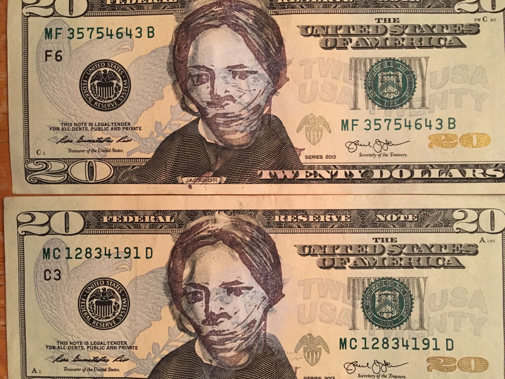 The images above reflect my recent creating of a Harriet Tubman stamp to put on the US $20 bill. When the US administration Treasury Secretary Mnuchin announced he was postponing the planned 2020 replacement by an image of Harriet Tubman of genocidal slave owner Andrew Jackson, I began writing her name on every $20 that came by me. In September 2018, Hyperallergic ran an article about Brooklyn artist Dano Wall’s creation of a rubber stamp likeness of Tubman specifically designed to replace Jackson. Here is an update of that article with links to Wall’s Etsy site and resources for the Tubman image.